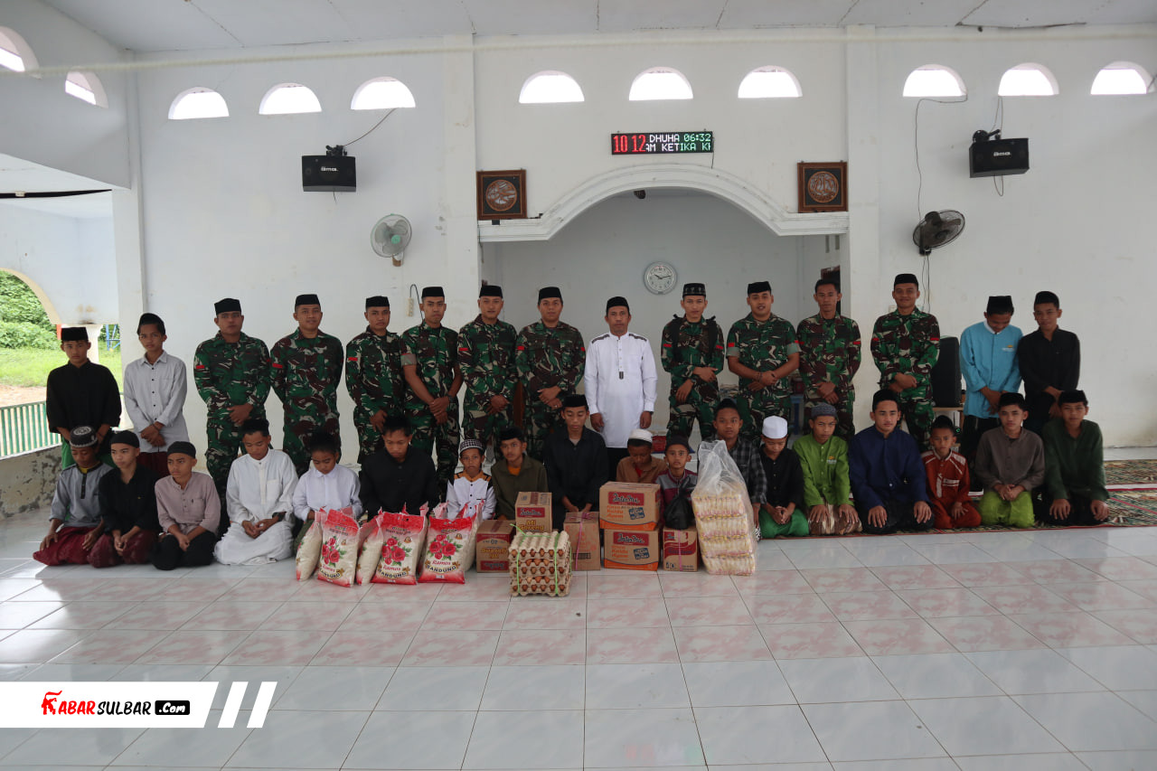 Personel Kodim 1418/Mamuju Berbagi Berkah Ramadhan dengan Membagikan Sembako ke Pondok Pesantren Al-Munawwarah Salutalawar