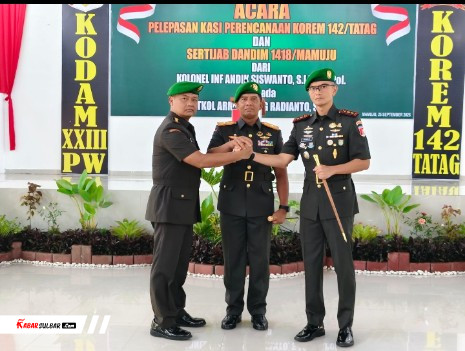News | • September 25, 2025 • Danrem 142/Tatag Pimpin Acara Pelepasan Kasi Perencanaan dan Sertijab Dandim 1418/Mamuju Mamuju, – Komandan Korem 142/Tatag Brigjen TNI Hartono, S.I.P., M.M., memimpin acara pelepasan Kasi Perencanaan...