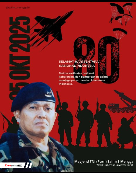 News | • Oktober 5, 2025 • Delapan Dekade TNI, Wagub Sulbar: Bukti Pengabdian Tanpa Pamrih untuk Negeri MAMUJU — Wakil Gubernur Sulawesi Barat, Mayjen TNI (Purn) Salim S Mengga, menyampaikan ucapan selamat...