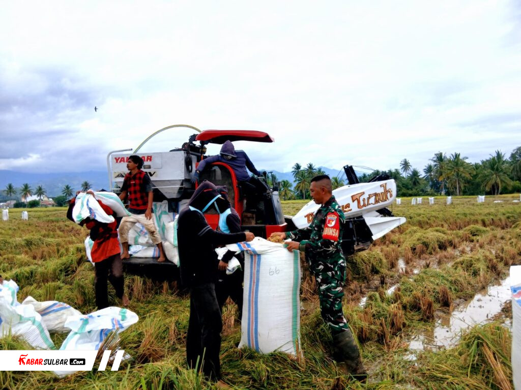 Polewali Mandar – Babinsa Koramil 1402-01/Polewali bersama petani melaksanakan panen padi di lahan milik Gapoktan Mattiro Deceng seluas 2 hektare di Kelurahan Takatidung, Kecamatan Polewali, Kabupaten Polewali Mandar, Selasa (7/4/2026).