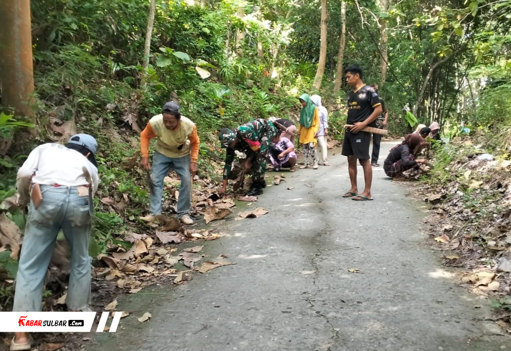 Sebagai Babinsa, Sertu Muh. Yusuf hadir memimpin kegiatan kerja bakti pembersihan bahu kanan dan kiri jalan di Dusun Siiyang, Desa Adolang Dhua, Kecamatan Pamboang, Kabupaten Majene, Selasa (3/2/2026).