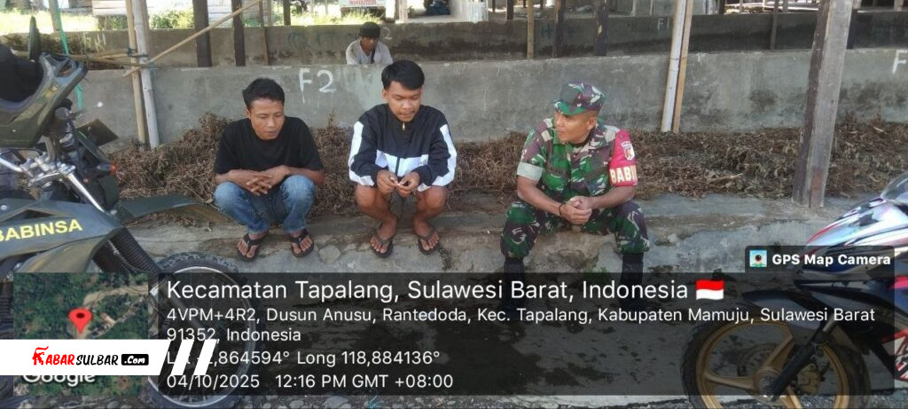 Mamuju – Babinsa Koramil 1418-02/Tapalang melaksanakan kegiatan pembinaan wilayah yang dilanjutkan dengan komunikasi sosial (Komsos) bersama masyarakat di Desa Labuang Rano, Kecamatan Tapalang Barat, Kabupaten Mamuju, Sabtu (4/10/2025).