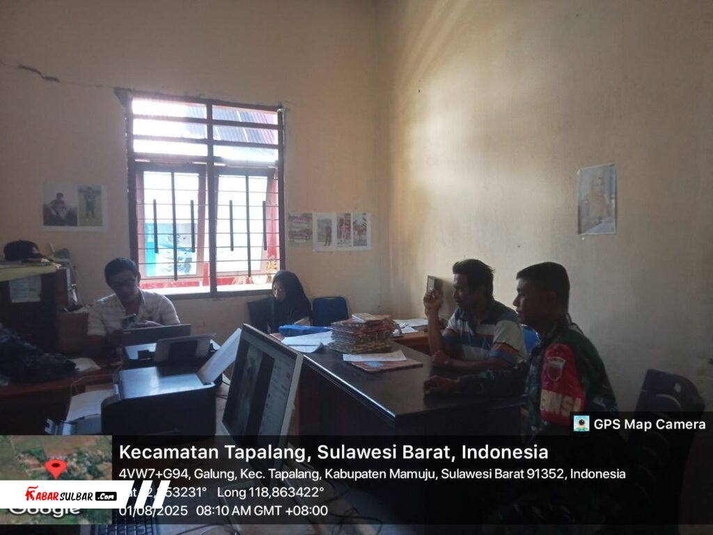 MAMUJU, — Guna memperkuat pemahaman situasi kewilayahan dan mempererat sinergi dengan masyarakat, Babinsa Koramil 1418-02/Tapalang, Kopda Muh Asri, melaksanakan kegiatan Pengumpulan Data Teritorial (Puldata) di wilayah Kecamatan Tapalang, Kabupaten Mamuju. Jumat (1/8/2025).
