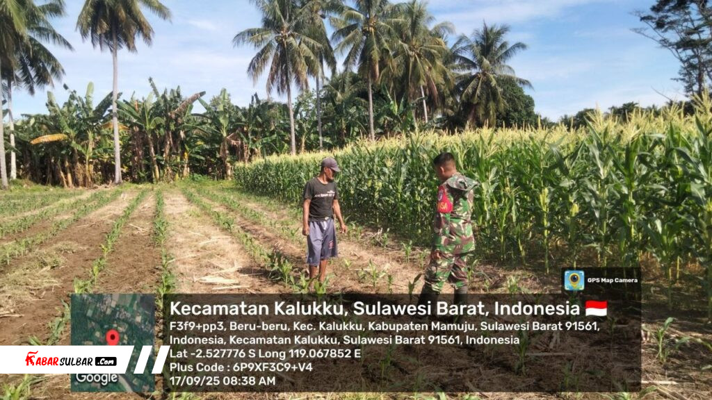 Mamuju, – Babinsa Koramil 1418-03/Kalukku melaksanakan kegiatan perawatan tanaman jagung serta pembersihan kolam ikan nila di lahan ketahanan pangan milik Korem yang dikelola oleh Kodim 1418/Mamuju, berlokasi di Dusun Taraweh, Desa Beru-beru, Kecamatan Kalukku, Kabupaten Mamuju. Rabu (17/9/2025).