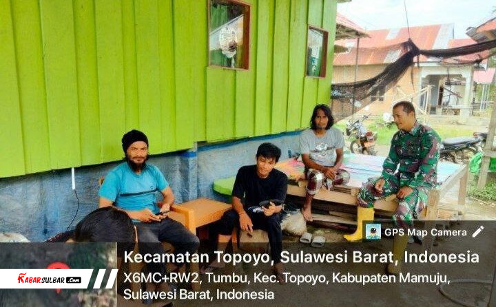 Mamuju Tengah – Babinsa Koramil 1418-04/Budong-Budong melaksanakan kegiatan komunikasi sosial (Komsos) bersama masyarakat di Desa Tumbu, Kecamatan Topoyo, Kabupaten Mamuju Tengah, Jumat (05/09/2025).