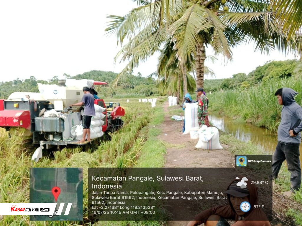 MAMUJU TENGAH, – Dalam upaya memperkuat sinergi antara TNI dan masyarakat serta mendukung ketahanan pangan nasional, Babinsa Koramil 1418-04/Budong-Budong, Serda Ambutuo, melaksanakan kegiatan Komunikasi Sosial (Komsos) sekaligus membantu pemanenan padi bersama masyarakat di Desa Polopangale, Kecamatan Pangale, Kabupaten Mamuju Tengah. Sabtu (26/7/2025).