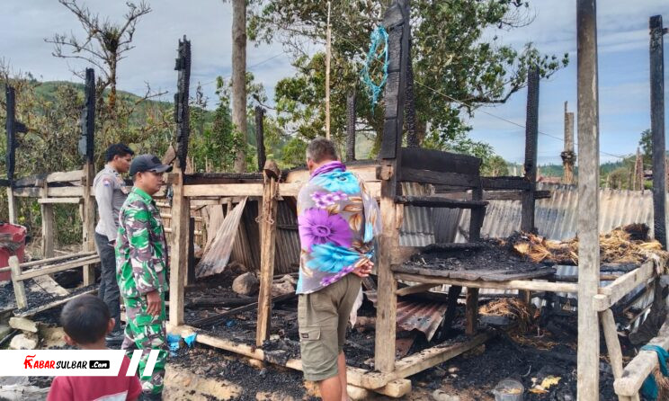 Mamasa – Babinsa Koramil 1428-04/Pana Kodim Serda Nurdin melaksanakan peninjauan langsung ke lokasi kebakaran rumah salah seorang warga binaan di Dusun Paladang Kecamatan Nosu Kabupaten Mamasa, Senin (24/11/2025)