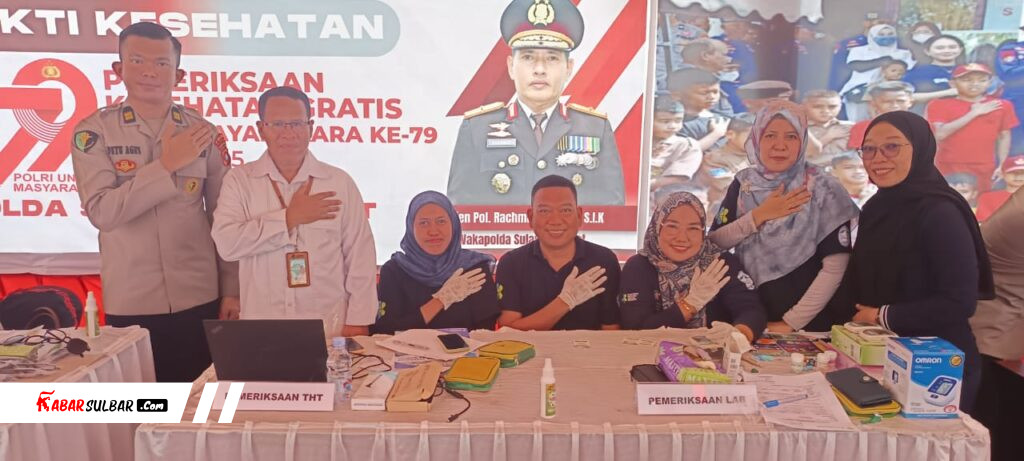 Mamuju – Dalam rangka memperingati Hari Bhayangkara ke-79, Polda Sulawesi Barat berkolaborasi dengan Politeknik Kesehatan Kementerian Kesehatan (Poltekkes Kemenkes) Mamuju menggelar aksi nyata kepedulian kepada masyarakat melalui pemeriksaan kesehatan gratis, Senin (01/07/2025).