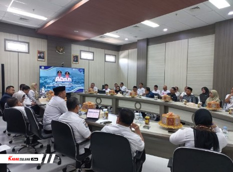 Kepala Bapperida Sulbar, Junda Maulana, mendampingi Gubernur Suhardi Duka dalam Rapat Koordinasi (Rakor) bersama para Bupati se-Sulawesi Barat, yang digelar di Ruang Oval lantai 3 Kantor Gubernur Sulbar, Rabu, 15 Oktober 2025.