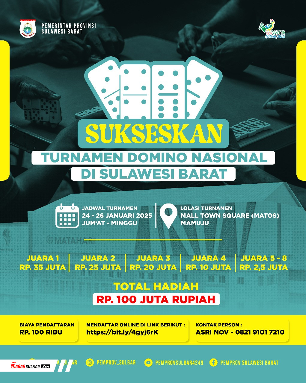 Advetorial | • Januari 20, 2025 • Seribu Lebih Peserta dari Berbagai Provinsi Visit to Sulbar, Siap Ikuti Turnamen Domino Nasional Pemprov Sulbar MAMUJU –Visit to Sulbar salah satu tagline semangat pembangunan 2025 yang terus digelorakan PJ Gubernur...