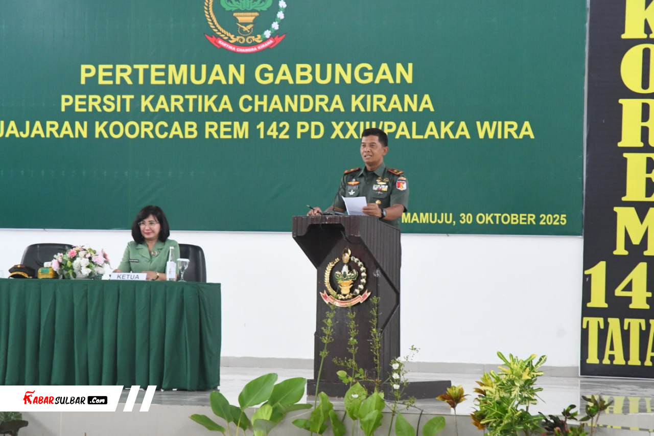 News | • Oktober 30, 2025 • Danrem 142/Tatag Hadiri Pertemuan Gabungan Persit KCK Sejajaran Koorcab Rem 142 PD XXIII/Palaka Wira Mamuju, – Danrem 142/Tatag Brigjen TNI Hartono, S.I.P., M.M. selaku Pembina Persit Kartika Chandra Kirana...