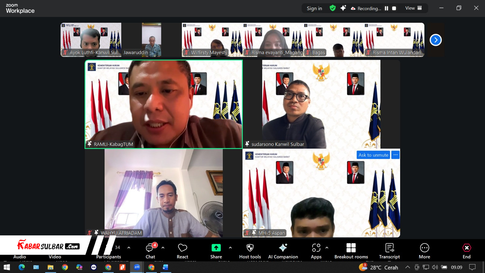 News | • Desember 29, 2025 • Tindak Lanjut Kebijakan WFA, Kanwil Kemenkum Sulbar Gelar Apel Pagi Secara Virtual MAMUJU, 29 Januari 2025 – Kantor Wilayah Kementerian Hukum Sulawesi Barat (Kanwil Kemenkum Sulbar) menggelar...