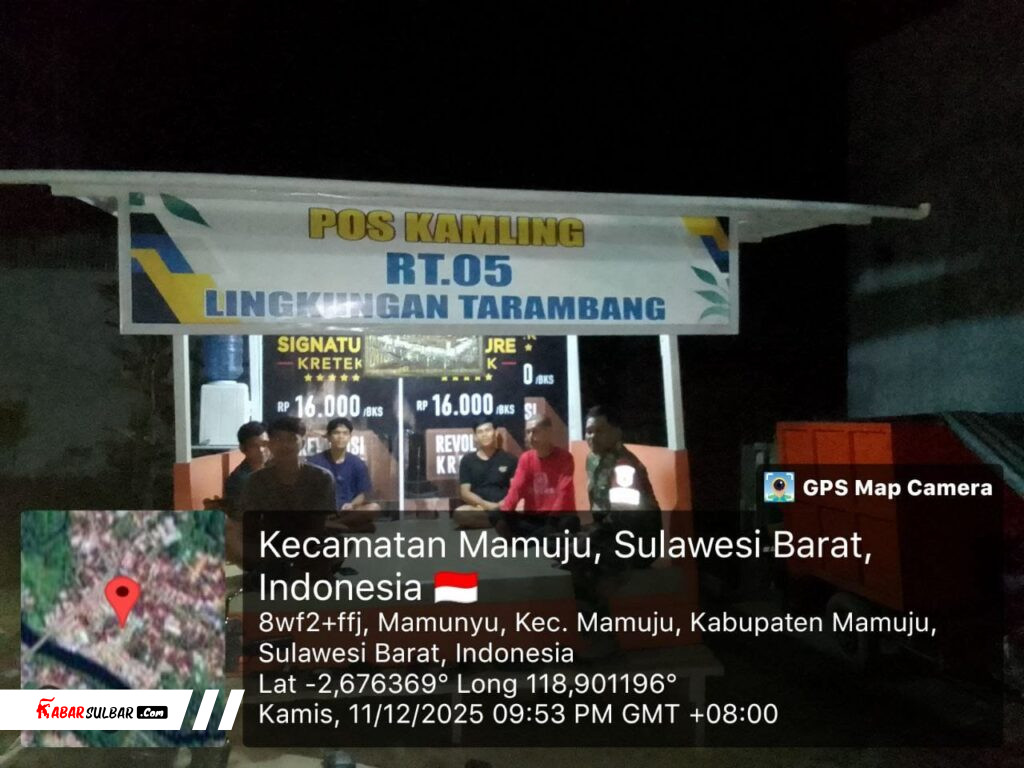 Mamuju – Dalam rangka menjaga situasi keamanan dan ketertiban masyarakat (Kamtibmas) tetap kondusif, Kodim 1418/Mamuju kembali melaksanakan kegiatan Patroli Sistem Keamanan Lingkungan (Siskamling) di Kelurahan Mamunyu, Kecamatan Mamuju, Kabupaten Mamuju. Patroli ini menjadi bagian dari upaya rutin jajaran TNI AD dalam memberikan rasa aman sekaligus memperkuat kedekatan dengan warga di wilayah binaan. Jumat (12/12/2025).