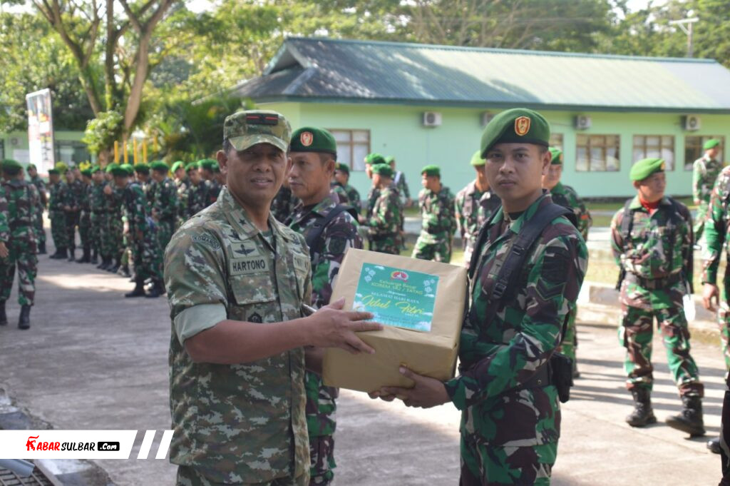 Mamuju – Komandan Korem (Danrem) 142/Tatag Hartono memberikan bingkisan dan Tunjangan Hari Raya (THR) Lebaran kepada prajurit dan Pegawai Negeri Sipil (PNS) Korem 142/Tatag. Kegiatan tersebut berlangsung di Lapangan Apel Makorem 142/Tatag, Mamuju, Provinsi Sulawesi Barat, Senin (9/3/2026).