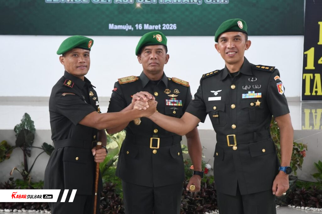 Mamuju – Komandan Korem (Danrem) 142/Tatag Brigjen TNI Hartono, S.I.P., M.M memimpin langsung acara Serah Terima Jabatan (Sertijab) Komandan Kodim (Dandim) 1401/Majene yang berlangsung di Aula Andi Depu Makorem 142/Tatag, Kabupaten Mamuju, Provinsi Sulawesi Barat, Senin (16/3/2026).