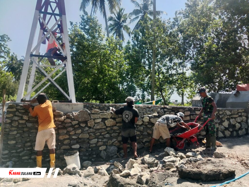 Di lokasi pembangunan, personel TNI bersama warga tampak bekerja tanpa sekat. Dari mengangkat batu, menyusun dinding penahan, hingga proses pengecoran beton dilakukan secara gotong royong. Aktivitas ini berlangsung di tengah kondisi lapangan yang cukup menantang, dengan akses terbatas dan material yang harus diangkut secara manual.