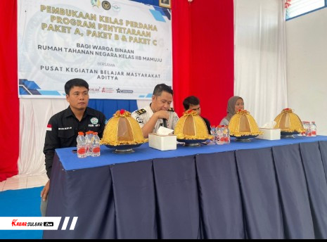 Mamuju, (INFO_PAS)–Sebagai bentuk komitmen dalam mendukung peningkatan kualitas sumber daya manusia Warga Binaan, Rumah Tahanan Negara Kelas IIB Mamuju bekerja sama dengan Pusat Kegiatan Belajar Masyarakat (PKBM) Aditya resmi membuka kelas perdana program pendidikan penyetaraan bagi Warga Binaan, bertempat di Aula Rutama, Selasa (07/04).