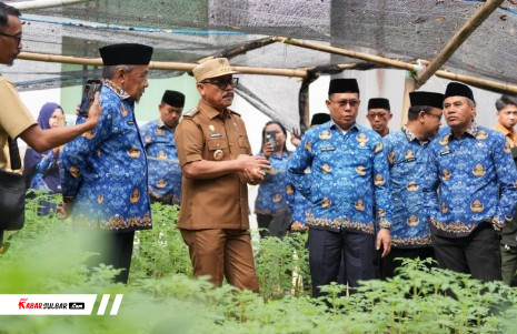 MAMUJU – Gubernur Sulbar Suhardi Duka meninjau pembibitan komoditas pangan oleh Dinas Ketapang di samping kantornya, Senin 17 November 2025.