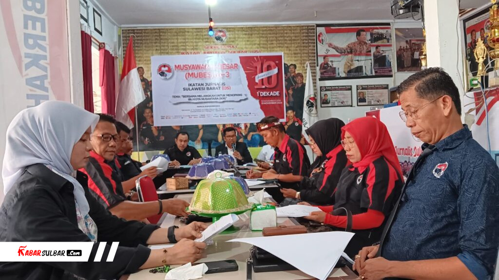Mamuju – Ikatan Jurnalis Sulawesi Barat (IJS) menggelar Musyawarah Besar atau Mubes ke III untuk pemilihan ketua umum Periode 2024 – 2027 di Kantor Sekretariat IJS, Jl Yos Sudarso, Kabupaten Mamuju, Minggu (10/11/2024).