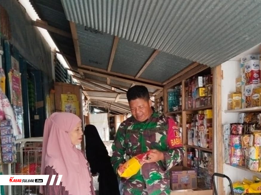 Majene – Menjelang bulan suci Ramadhan, Sertu La Ode Manaf, Babinsa Koramil 1401-01/Banggae Kodim 1401/Majene, melakukan pengecekan harga dan ketersediaan sembako di Pasar Camba, Kelurahan Baru, Kecamatan Banggae, Kabupaten Majene, Minggu (8/2/2026).