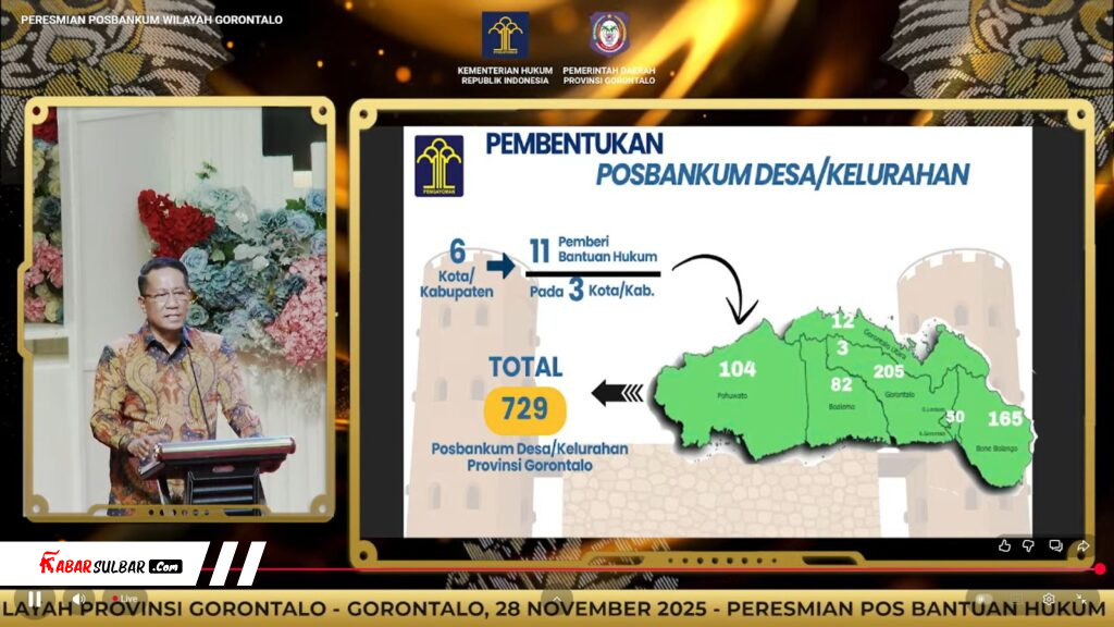 Menteri Hukum, Suprtaman Andi Agtas pada peresmian 729 Pos Bantuan Hukum (Posbakum) di desa/kelurahan di Provinsi Gorontalo tersebut menekankan bahwa Pembentukan ratusan Posbakum merupakan wujud nyata komitmen pemerintah untuk menghadirkan akses keadilan yang merata bagi seluruh lapisan masyarakat, hingga ke pelosok desa.