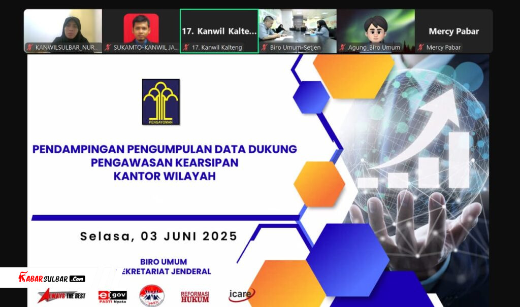 Mamuju, 3 Juni 2025 – Kantor Wilayah Kementerian Hukum (Kanwil Kemenkum) Sulawesi Barat menghadiri pendampingan pengumpulan data dukung pengawasan kearsipan secara virtual.