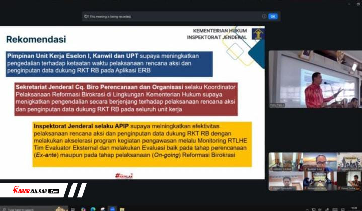 Mamuju, 27 November 2025 – Kantor Wilayah Kementerian Hukum Sulawesi Barat menghadiri penutupan kegiatan Evaluasi Rencana Kerja Tahunan RKT RB Kemenkum Tahun 2025 secara virtual di ruang rapat Oemar Seno adji.
