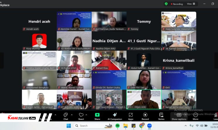 Pelaksanaan kegiatan itu dihadiri oleh Kabid Pelayanan AHU, Wardi mewakili Kakanwil Kemenkum Sulbar, Sunu Tedy Maranto secara virtual.