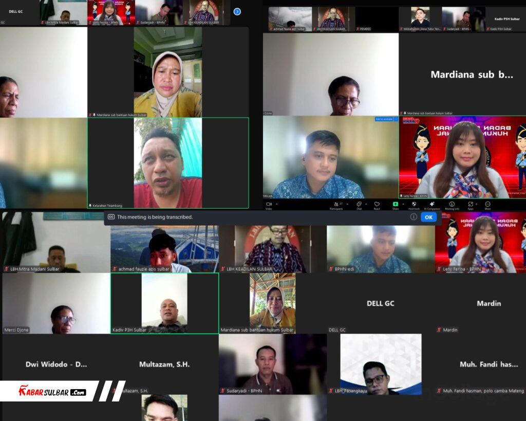 Mamuju, Sulawesi Barat – Kantor Wilayah Kementerian Hukum Sulawesi Barat melaksanakan rapat koordinasi Monitoring dan Evaluasi pelaksanaan Aktualisasi Pelatihan Paralegal serentak serta Pembentukan Pos Bantuan Hukum secara virtual melalui platform Zoom pada hari Jumat, 25 April 2025