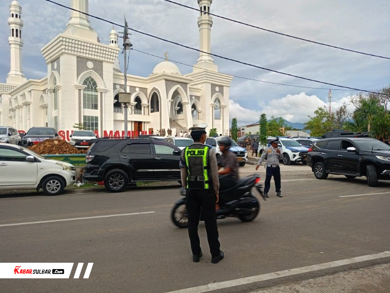 MAMUJU – Kunjungan Kapolda Sulbar ke Masjid Suada, Kabupaten Mamuju, Jumat (20/2/2026) sore, mendapat pengamanan ketat dari jajaran Sat Lantas Polresta Mamuju. Sejak pukul 17.00 WITA, personel telah disiagakan untuk melaksanakan pengamanan dan pengaturan (pam gatur) arus lalu lintas di sekitar lokasi kegiatan.