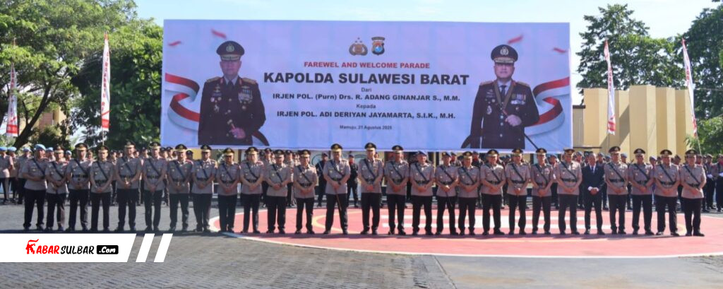 Mamuju – Kapolresta Mamuju, Kombes Pol [Nama Kapolresta], menghadiri upacara Farewell dan Welcome Parade serah terima jabatan Kapolda Sulawesi Barat yang berlangsung di Mapolda Sulbar. Kamis, 21 Agustus 2025