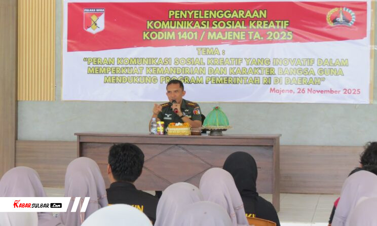 Majene – Sebagai sarana mempererat silaturahmi sekaligus meningkatkan kemanunggalan TNI dengan seluruh komponen bangsa, Kodim 1401/Majene menggelar kegiatan Komunikasi Sosial (Komsos) Kreatif Tahun 2025 di Aula Kodim 1401/Majene, Kelurahan Lembang, Kecamatan Banggae Timur, Rabu (26/11/2025).