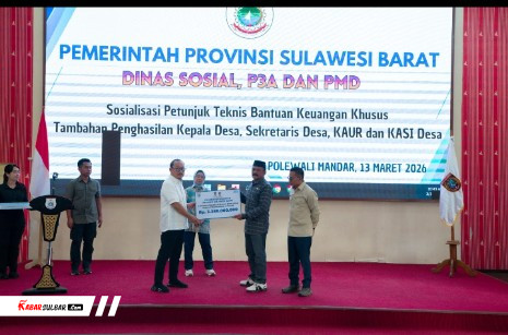 Polman – Gubernur Sulawesi Barat Suhardi Duka menghadiri kegiatan sosialisasi petunjuk teknis (juknis) Bantuan Keuangan Khusus (BKK) tambahan penghasilan bagi kepala desa, KAUR, dan Kasi desa di Kantor Bupati Polewali Mandar, Jumat, 13 Maret 2026.