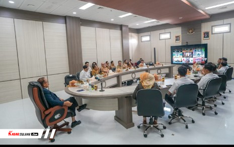 Mamuju – Gubernur Sulbar Suhardi Duka mengikuti Rapat Koordinasi (Rakor) Pengendalian Inflasi yang dirangkaikan dengan arahan Menteri Keuangan RI terkait percepatan realisasi belanja pemerintah daerah untuk menjaga pertumbuhan ekonomi nasional. Rakor tersebut digelar secara virtual (Zoom Meeting) dari Ruang Oval Lantai 3 Kantor Gubernur Sulbar, Senin, 20 Oktober 2025.