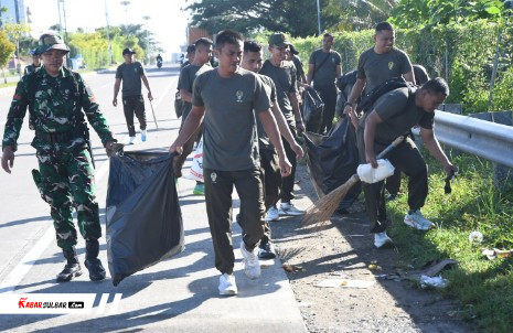 Mamuju – Dalam rangka mendukung Gerakan Indonesia Asri, Korem 142/Tatag menggelar kegiatan Jumat Bersih berupa aksi bersih pantai yang dilaksanakan di sepanjang Jalan Arteri Kecamatan Mamuju, Kabupaten Mamuju, Provinsi Sulawesi Barat, Jumat (20/2/2026).
