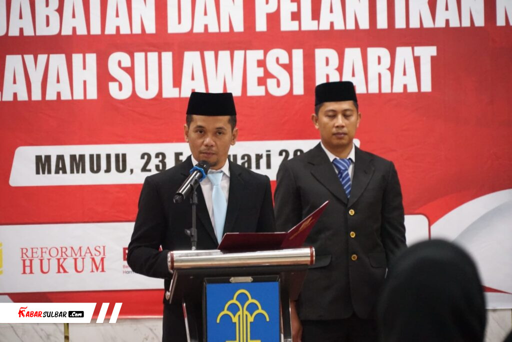 MAMUJU – Kakanwil Kemenkum Sulbar, Saefur Rochim melantik dan mengambil sumpah jabatan 9 (Sembilan) orang Notaris baru di wilayah Provinsi Sulawesi Barat di Aula Pengayoman, Senin (23/2/2026).