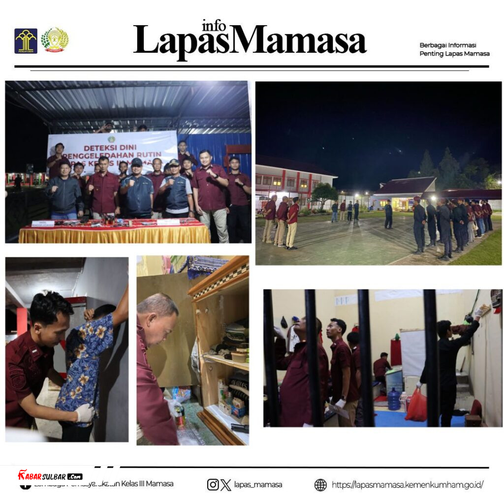 Mamasa, 30 November 2024 – Lapas Kelas III Mamasa bersama Tim Satuan Operasional Kepatuhan Internal (Satops Patnal) dari Divisi Pemasyarakatan Sulawesi Barat melaksanakan penggeledahan di blok hunian sebagai bagian dari upaya deteksi dini terhadap potensi gangguan keamanan dan ketertiban. Kegiatan ini berlangsung dengan pengawasan langsung dari Kepala Divisi Pemasyarakatan Sulawesi Barat, Bagus Kurinawan, serta didampingi oleh Kepala Lapas Kelas III Mamasa, hastono, dan jajarannya.