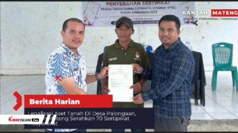 Mamuju Tengah, – Kepala Seksi Penetapan Hak dan Pendaftaran (Kasi PHP) Kantor Pertanahan Kabupaten Mamuju Tengah, Zulkifli Ali menyerahkan 70 set Sertipikat Hak Atas Tanah di Desa Palongaan, Kecamatan Topoyo, Jum’at (13/02/2025).