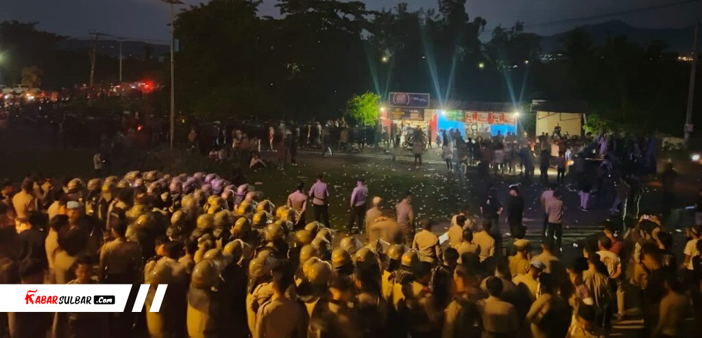 Mamuju – Polresta Mamuju bersama personel gabungan dari BKO DitSamapta dan Satuan Brimob Polda Sulawesi Barat serta Satpol PP melaksanakan pengamanan aksi unras penolakan aktivitas tambang pasir yang digelar di depan Kantor Gubernur Sulbar. Jumat, 9 Mei 2025
