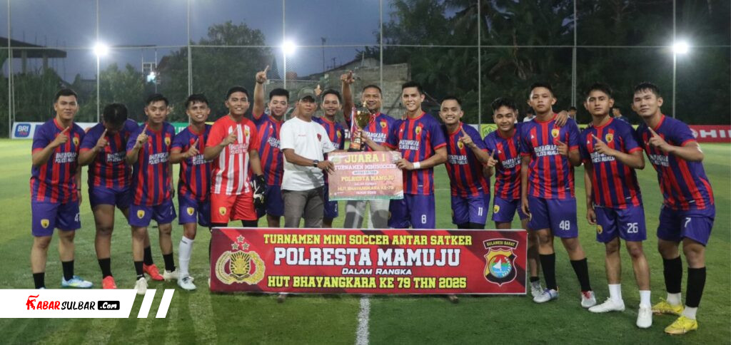 Mamuju – Semarak Hari Bhayangkara ke-79, Polresta Mamuju menggelar turnamen mini soccer internal yang berlangsung meriah dan penuh semangat sportivitas.