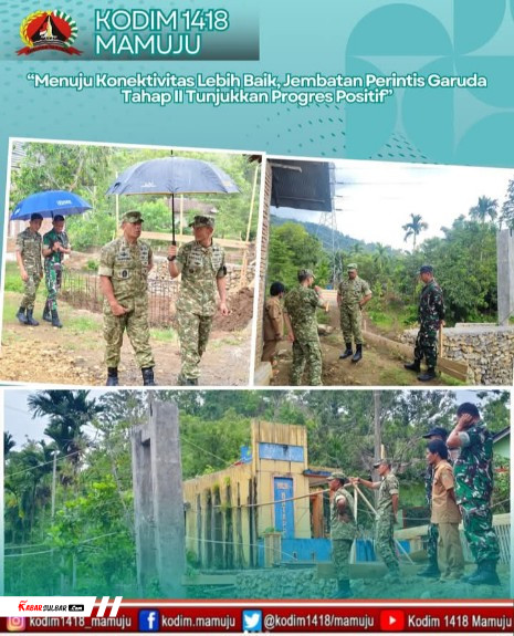 Dalam rangka memastikan kelancaran dan kualitas pembangunan, Danrem 142/Tatag Brigjen TNI Hartono, S.I.P., M.M. turun langsung meninjau lokasi Jembatan Perintis Garuda. Kunjungan tersebut turut didampingi oleh Dandim 1418/Mamuju Kolonel Arm Andang Radianto, S.A.P.