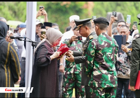 Dengan ekspresi tegar namun sarat duka, Hj. Fatmawati Salim Mengga menerima lipatan bendera itu dan memeluknya erat. Tangis keluarga pecah, mengiringi detik-detik ketika simbol kehormatan negara tersebut berpindah ke pangkuannya.