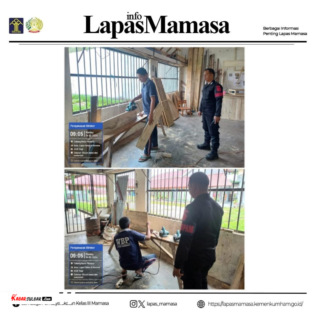Mamasa- 14 Oktober 2024 – Dalam rangka menjaga keamanan dan ketertiban selama berlangsungnya kegiatan bimbingan kerja warga binaan, Kepala Regu Pengamanan (Karupam) Regu IV bersama tim melaksanakan pengawasan intensif terhadap kegiatan kerja warga binaan di Lapas Kelas III Mamasa. Pengawasan ini bertujuan untuk memastikan peralatan kerja tidak dibawa ke dalam blok hunian yang dapat berpotensi menimbulkan gangguan keamanan. Kegiatan bimbingan kerja ini dilaksanakan oleh beberapa warga binaan yang memiliki keterampilan dalam bidang pertukangan.
