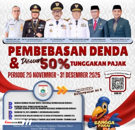 Program ini berlangsung mulai 20 November hingga 31 Desember 2025, memberikan kesempatan luas bagi wajib pajak di seluruh kabupaten se-Sulbar untuk memperoleh keringanan besar-besaran.