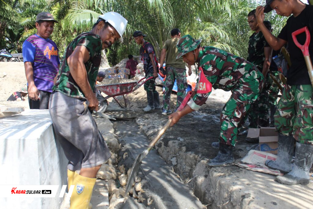 Meski dihadapkan pada keterbatasan sarana dan kondisi lapangan, semangat gotong royong antara TNI dan masyarakat tetap terjaga dalam setiap tahapan pekerjaan.
