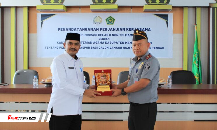 Mamuju Tengah – Dalam rangka meningkatkan pelayanan paspor bagi calon jemaah haji Kabupaten Mamuju Tengah, Kantor Imigrasi Kelas II Non TPI Mamuju melakukan penandatanganan perjanjian kerjasama dengan Kantor Kementerian Agama (Kemenag) Kabupaten Mamuju Tengah, Selasa (13/11/2024).