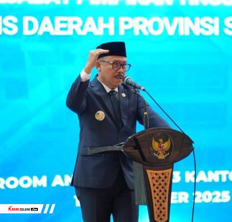 Mamuju – Gubernur Sulbar, Suhardi Duka (SDK), menyoroti capaian positif pertumbuhan ekonomi provinsi ke-33 ini usai melantik dan mengambil sumpah Junda Maulana sebagai Sekretaris Daerah (Sekda) Provinsi Sulbar, di Ballroom Andi Depu, Kantor Gubernur Sulbar, Senin, 10 November 2025.
