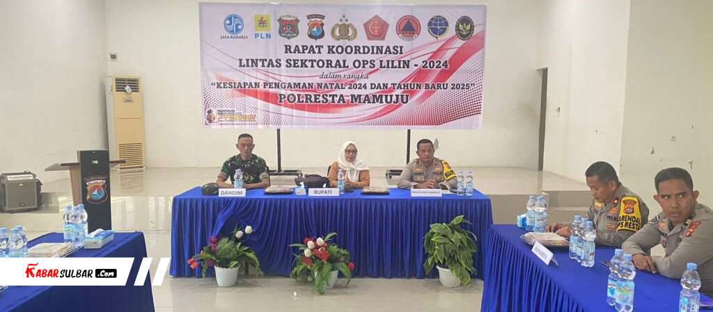 Mamuju – Dalam rangka memastikan kesiapan pengamanan perayaan Natal 2024 dan Tahun Baru 2025, Wakapolresta Mamuju AKBP Arianto memimpin Rapat Koordinasi Lintas Sektoral Operasi Lilin yang berlangsung di Aula Wira Satya Polresta Mamuju. Jumat, 20 Desember 2024