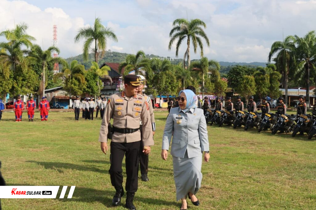 Kegiatan apel gelar pasukan tersebut dipimpin langsung oleh Bupati Mamuju Hj. Sutinah Suhardi dan didampingi oleh Kapolresta Mamuju Kombes Pol Ferdyan Indra Fahmi.