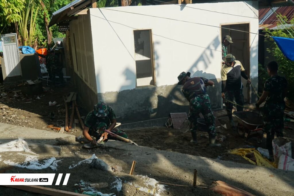 Pengerjaan rumah tersebut dilakukan secara gotong royong antara Satgas TMMD Kodim 1401/Majene dengan warga setempat. Mereka bahu-membahu memperbaiki struktur bangunan, memperhalus dinding, memasang lantai, serta menyiapkan fasilitas dasar agar rumah itu menjadi hunian yang lebih layak dan nyaman.